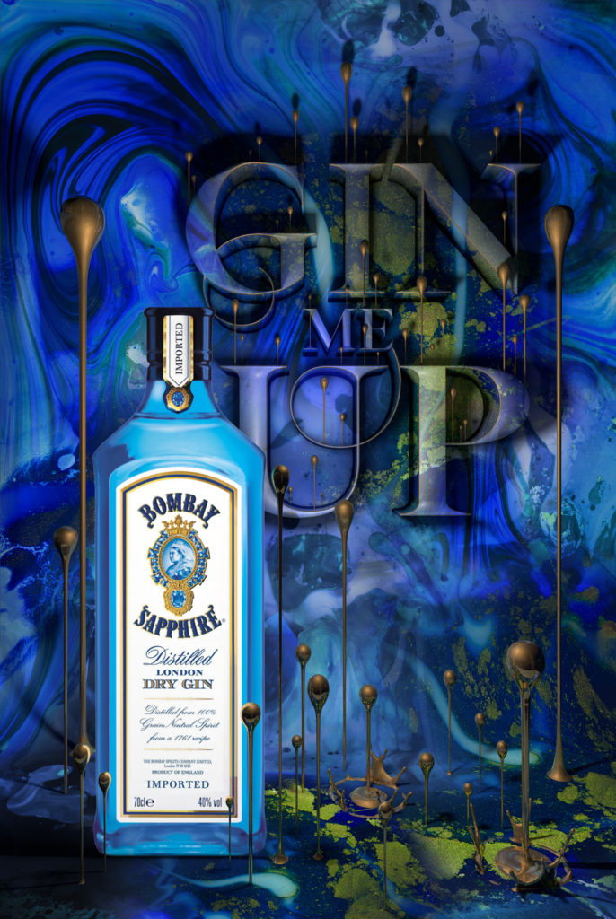 Bombay Shappire, esta competición busca que los participantes exploren su lado más ingenioso para crear un cóctel con base de gin que además sea toda una obra de arte a los sentidos. Para promocionar la campaña en México, se nos escargó la creación de una pieza gráfica que se insertaría en marquesinas y paradas de bus de las principales ciudades mexicanas.